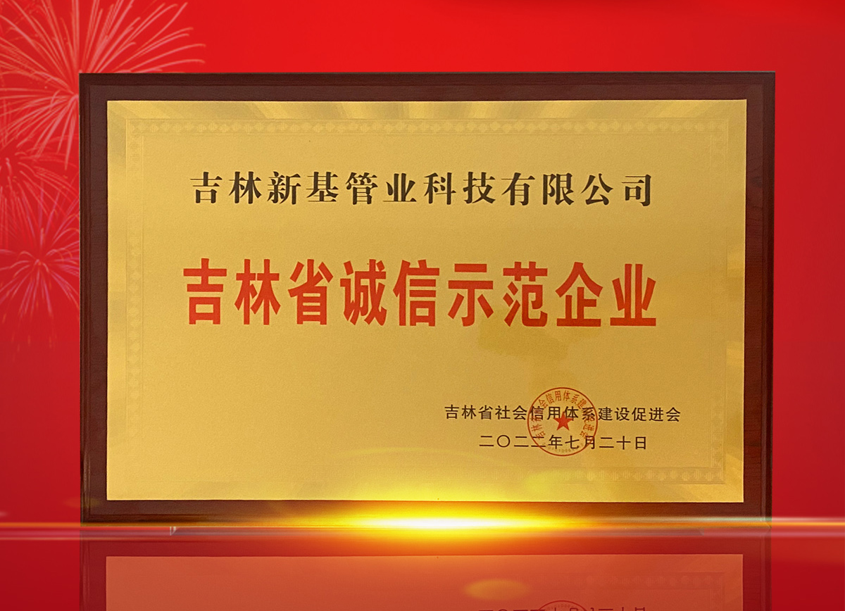喜報(bào)丨新基管業(yè)再次榮獲"吉林省誠信示范企業(yè)"榮譽(yù)稱號